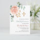 Rose gold greenery cross first holy communion invitation
