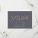 Hand lettered save the date script in faux rose gold foil on colour editable smoky grey, elegant and stylish, great modern simple personalised save the date cards.