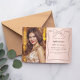 A rose gold gradient background, decorated with a hand-drawn bow and frame. Personalise and add a photo, name and party details.