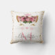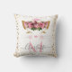Trendy kitty princess monogram pillow. Pretty cat princess face in rose gold, blush pink and gold glitter, pink heart shaped nose and big golden glitter eye lashes, with a crown and pink and red roses floral arrangement. On the sides faux golden pink sparkles confetti. Easily customise and add your name and monogram to personalise the pillow.