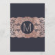 Modern, elegant, and chic faux rose gold lace on navy blue, wedding reception menu cards. This classic and sophisticated design is perfect for the classy, stylish, and trendy wedding reception. Personalise with your own menu on the front, along with your names and dates. Then customise the back with your monogram initial. All photo print design.