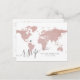 Rose Gold Light Pink World Map Heart RSVP Postcard