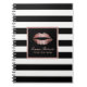 Modern Rose Gold Lips Elegant Black & White Stripes Notebooks.