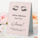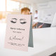 Rose gold, blush background. Personalise and add your name, title, opening hours. Black text. Decorated with a pair of eyes/lashes.