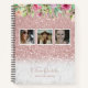 Rose Gold Marble Glitter Floral Name Photo Collage Notebook
