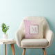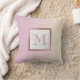 This girly throw pillow features a cute design with a monogram in marble and rose gold frame on a pink gradient background.