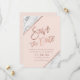 Rose Gold typography on customisable blush pink rose gold marble colour block, and faux rose gold geometric stripes chic save the date wedding , perfect for elegant, stylish wedding,