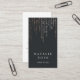 Simple and elegant vertical business card design features classic white lettering on a rich soft black background with vertical strands of faux rose gold foil string lights cascading from the top. Personalise with two lines of custom text on the front, and add your full contact information to the reverse side.