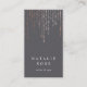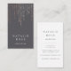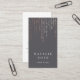 Simple and elegant vertical business card design features classic white lettering on a rich medium grey background with vertical strands of faux rose gold foil string lights cascading from the top. Personalise with two lines of custom text on the front, and add your full contact information to the reverse side.