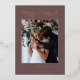 Celebrate your just-married glow with this elegant Merry & Married wedding announcement featuring refined rose gold accents and a deep taupe background. Chic, modern, and warm, this luxe design blends holiday charm with timeless wedding style. Perfect for winter weddings, New Year celebrations, or festive elopements, this card highlights your favorite wedding photo with sophisticated metallic foil and a rich neutral tone for elevated seasonal elegance. Personalize names, date, and photos to create your perfect keepsake.