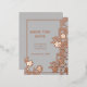 Announce your wedding date with elegance! Our Rose Gold Metallic Floral Wedding Save the Date postcard features a chic grey background accented by a luxurious rose gold foil frame. Delicate floral and foliage details in shimmering rose gold foil dance along the frame's edge, adding a touch of whimsical romance. This design is perfect for creating a save the date that's both sophisticated and sweetly charming.