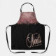 Trendy, chic rose gold Nails personalised apron. Design features typography script ''nails'' in rose gold colour and a name on a black background