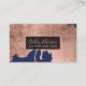 Rose gold navy blue drips hair makeup typography business card