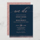 Rose Gold & Navy Blue Elegant Typography Wedding Invitation