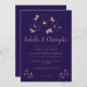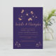 Sophisticated and modern, rose gold metallic floral original art design on midnight blue background wedding invitation.