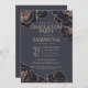 Rose Gold Navy Blue Flowers Graduation Party Invitation