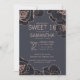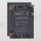 Rose Gold Navy Blue Flowers Sweet 16 Invitations