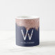 Rose Gold Navy Blue Girly Glitter Dust Monogram Coffee Mug