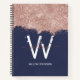 Rose Gold Navy Blue Girly Glitter Dust Monogram Notebook