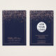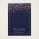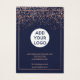 Modern rose gold confetti and geometric border on editable navy blue jewellery earring display with hole markers that you can move around or delete. Add your logo.