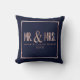 Rose Gold Navy Blue Mr. and Mrs. Monogram Wedding Cushion