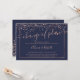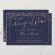 Rose gold navy blue script postponed change plan invitation