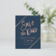 rose Gold typography on customisable navy blue and faux rose gold geometric stripes chic save the date wedding , perfect for elegant, stylish wedding,
