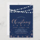Celebrate the season with this Christmas dinner party invitation. This design features faux rose gold foil snowflakes and string lights with stylish typography.