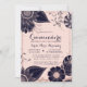 Rose Gold Navy Pink Floral Glitter Quinceañera Invitation