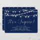 Celebrate your special day with this stylish modern birthday party invitation template. This design features beautiful string lights with a silver and navy colour theme.