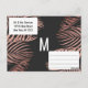 Elegant, chic, and modern tropical beach faux printed rose gold palm tree frond leaves on black with faux printed rose gold sequin typography, Save-the-Date wedding Postcards. This classic and sophisticated design is perfect for the trendy and stylish marrying couple. Personalise with your own message on the front as well as a customised monogram initial on the back. All photo print design.