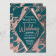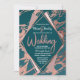 Rose Gold Peacock Teal Marble Diamond Wedding Invitation