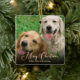This simple and beautiful photo Christmas ornament features elegant rose gold script "Merry Christmas" and your own pet's name(s) and photo as the background. Easy to personalise with your own special photo, names and year. Back of the ornament features the year on the same photo.