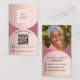 Rose gold arch frames as background. Personalise and add your business logo,photo, name, title and contact information. Add your website url/link to the Qr code. With Facebook and Instagram icons. Black text. Text: Connect with me.