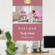 A rose gold background. Personalise and add your company, business logo, a photo, text, room number. White text.