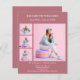 Create your own unique photo collage. Use four, 4 of your favourite photos. Personalise and add a name and party details. Rose gold background colour, white text.