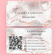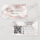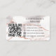 Back: Templates for your name, title, phone number, mail and website address, QR-code to your website or social media account. Facebook and Instagram icons.