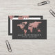 Rose gold blush pink world map on dark grey background is a minimal and modern business card for a travel agent, travel blogger, vacation home owner or destination wedding planner or international worldwide sales employee. Fonts and card background colour can be changed to match your small business entrepreneur branding colours. Foil is a printed effect, not authentic foil.
