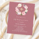 An elegant girly rose gold background, decorated with watercolored pink and white flowers in a wreath and a golden cross. Personalise and add a name and details. White text.