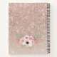 Rose Gold Pink Floral Monogram Glitter Notebook