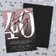Pink and Black Rose Gold Glitter 40th Birthday Party Invitation. Celebrate forty in style with this bold and chic design. The top half features a large white “40” with a sassy handwritten black script “Forty” layered over it, standing out against a faux rose gold glitter background that fades into a sleek black gradient. The bottom portion is solid black with party details in a clean sans serif white font for a modern and striking look. Colours for the fonts and background can be customised to fit your theme.