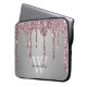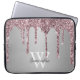 Rose Gold Pink Glitter Drips Silver Monogram Name Laptop Sleeve