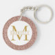 Rose Gold Pink Glitter Monogram Name Key Ring