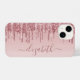 Custom elegant and girly iPhone case featuring dripping pink rose gold faux glitter on an ombre rose gold background. Personalise with your name in a stylish trendy rose gold script with swashes.