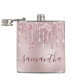 A rose gold background with pink drips, paint dripping look. Personalise and add a name. The name is written in dark rose gold with a large, bold modern hand lettered style script with swashes. To keep the swashes only delete the sample name, leave the spaces or emoji's in front and after the name.