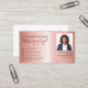 Professional Elegant and Modern Minimalist Photo Business Card that allows you to include a square or portrait photo or picture on the right side. Notary Signing Agent in elegant Cursive font in dark red over a faux rose gold background