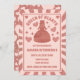 A retro playing card inspired Queen of Hearts and Alice in wonderland themed birthday party invitation design in a rose gold glitter colour palette with heart and diamonds details.