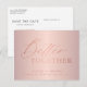 Rose gold script better together wedding save date announcement postcard