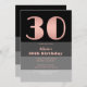 Rose Gold Script Black Grey Stripes 30th Birthday Invitation