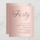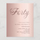 A modern, stylish invitation for a 40th birthday party. Rose gold gradient background and the word Forty written with elegant large script letters in dark rose gold. Personalise and add a name and party details.